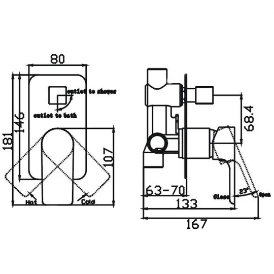 This wall mixer with diverter has TWO outlets, which can control TWO items.